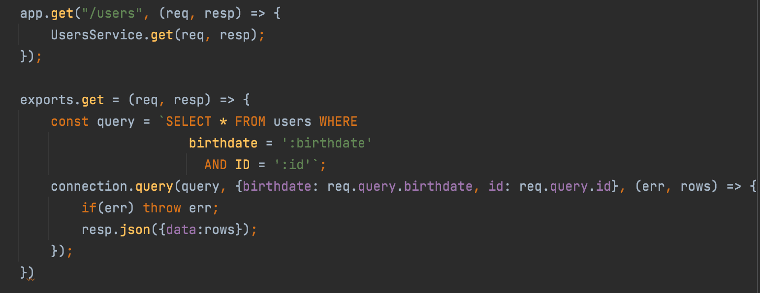 let's look at some code to see how a SQL Injection looks like, and how it can be exploited. We will use NodeJS for the sake of this example, but SQL Injection will look fairly similar in most languages, and so is the solution for it.
